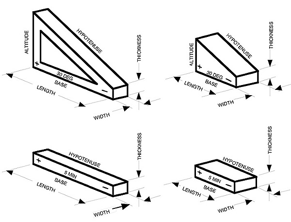 Note: Angle gage blocks are made to Webber Gage specifications. There is not currently a U.S. or international standard