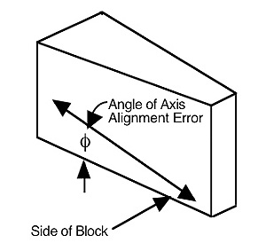 axis of measurement must be aligned with the side of the angle block for proper measurement.