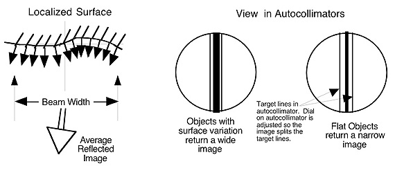 The angle indicated by the autocollimator is the average returned over the entire surface