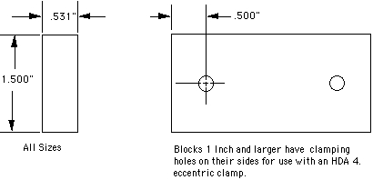 both Inch and Metric sizes and in steel and croblox materials. (Not available in ceramic material). Metric blocks