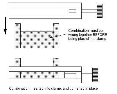 When rectangular style gage blocks are used with accessories, it is necessary to secure them