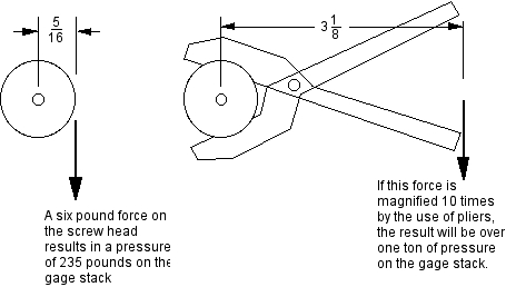 on the circumference of the screw head will result in 235 pounds of force on the gage blocks